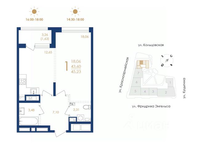 В жилом комплексе, расположенном в 4 километрах от исторического центра Воронежа, продается 1-комнатная квартира площадью 37.24 кв. м с черновой отделкой. Квартира расположена на 13 этаже корпуса 10908586 (ЖК "Суворов Сити 2" (1-й этап, ПОЗИ жилого комплекса комфорт-класса "Суворов Сити II" от федерального застройщика ГК "Развитие". Жилой комплекс "Суворов Сити II" - продолжение современного масштабного проекта "Суворов Сити", находящегося в спальном районе в четырех километрах от центра города. Проект сочетает удачное расположение с удобными планировками, актуальным дизайном и приватным двором. Расположение Пешком: - 5-10 минут - Автобусные остановки; - 12 минут - Школа 50; - 15 минут - Детский сад 174; - 20 минут - ТРЦ "Армада". На автомобиле: - 1 минута - улица Матросова; - 5 минут - улица Ворошилова, проспект Патриотов; - 10 минут - Вогрэсовский мост; - 15 минут - проспект Революции, Чернавский мост, вокзал "Воронеж-1"; - 30 минут - выезд на М-4; - 50 минут - аэропорт "Воронеж". Лобби - Колясочная; - Лапомойка для питомцев; - Входные группы с окнами в пол; - Лифты с возможностью спуска в подземный паркинг на 465 машиномест. Благоустройство - Двор закрыт от прохожих и транспорта; - Доступ на внутреннюю территорию, в парадные и в паркинг по ключам; - Круглосуточное видеонаблюдение; - Собственная инфраструктура (важные магазины и сервисы) на первом этаже здания; - Детский сад во дворе ЖК; - Пешеходная аллея; - Места для отдыха со скамейками и перголами; - Детские игровые и спортивные площадки; - Навигационная подсветка в темное время суток. Окружение - Спокойный спальный район; - Близко магазины, кафе, медклиник, салонов красоты, аптек; - В шаговой доступности - скверы, сады, ТРЦ, стадион. О застройщике Федеральный застройщик ГК "Развитие" лидирует по количеству возводимых объектов и входит в ТОП-20 девелоперов России. За 10 лет на рынке компания ввела в эксплуатацию свыше 700 тыс. кв. м жилья, еще столько же находится в стадии строительства. В портфеле - 30 завершенных проектов и более десятка тысяч заселенных квартир. Девелопер сотрудничает с ведущими отраслевыми партнерами, включая "Северсталь" и "Технониколь". "Развитие" специализируется на строительстве жилых комплексов и микрорайонов, развитии инфраструктуры и создании комфортной городской среды. Девелопер реализует проекты в Воронеже, Москве и области, Ленинградской области, Крыму, Орле и Самаре. Основные форматы - ЖК комфорт- и бизнес-класса, апарт-отели, прибрежные премиальные комплексы и жилые кластеры с коммерцией, парковками и благоустроенными дворами.