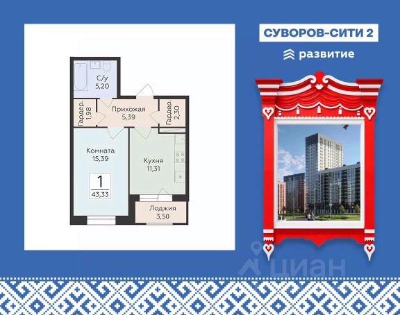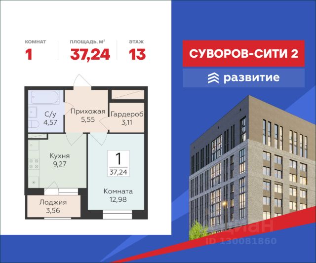 Продаётся 1-комнатная квартира в строящемся доме (Дом 1), срок сдачи: IV-кв. 2027, общей площадью 43.66 кв.м., на 13 этаже. "Романовский" - это жилой комплекс нового поколения для комфортной жизни в городе. Особое внимание здесь уделяется деталям, из которых складывается ваша идеальная жизнь.