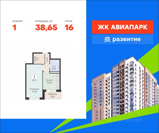 Квартира: 1 к 37,90 кв.м., 16 этаж в комплексе Озерки, 4 очередь, корп.46, сдача: 4кв. , этажей: 17, адрес Воронеж г., Шидловского ул., д. 22, Застройщик: ВЫБОР.