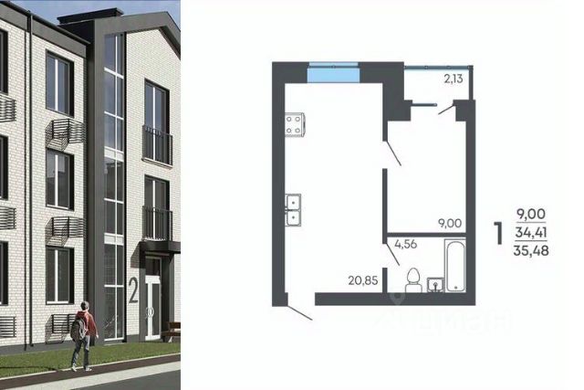 • ✅ Минимальная площадь: 33,8 м²