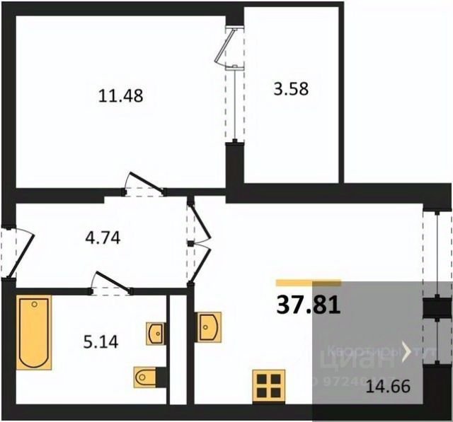 Квартира: 1 к 37,81 кв.м., 4 этаж в комплексе Z-town, 1 очередь, корп.1, сдача: 2кв. , этажей: 21, адрес Воронеж г., Чуева наб., д. 7, Застройщик: Новый код.