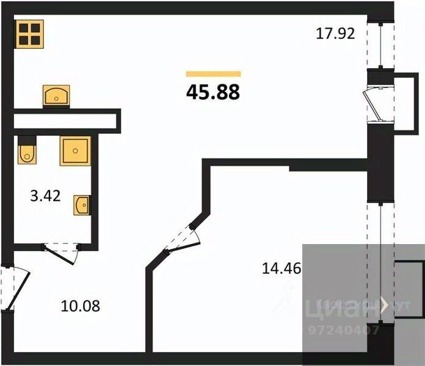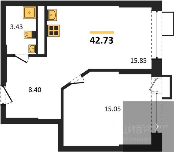 Квартира: 1 к 41,22 кв.м., 4 этаж в комплексе Z-town, 1 очередь, корп.1, сдача: 2кв. , этажей: 21, адрес Воронеж г., Чуева наб., д. 7, Застройщик: Новый код.