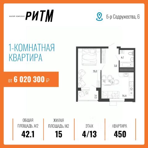ЖК "РИТМ" — ДОСТУПНАЯ И ВЫГОДНАЯ ИНВЕСТИЦИЯ В ВАШЕ БУДУЩЕЕ Жилой комплекс "Ритм" по ул. Бульвар Содружества уч. 6 — часть масштабного проекта развития территории воронежского левобережья — микрорайона "Ключи", который займет 28,6 га недалеко от въезда в город по тамбовскому направлению. Здесь строится инновационный красивый мини-город. Он насыщен социальной и коммерческой инфраструктурой и обеспечен новейшими коммуникациями. Комплекс состоит не только из качественных домов. Решения по благоустройству стимулируют ведение активного здорового образа жизни. Продуманы возможности для взаимодействия людей, их творческой самореализации, выстраивания добрососедских связей и формирования современного приятного комьюнити. И все это на благоприятном экологическом фоне. Это действительно новый шаг в создании привлекательной среды для жизни в современном ритме! Жить, не ограничивая себя и свою семью, — разве не об этом вы мечтали? Вас ждет инновационное пространство, где вы будете вести свою насыщенную и интересную жизнь в выбранном вами ритме. Подземный паркинг на -1 этаже вместимостью на 114 машино-места, в том числе семейные парковки на два автомобиля освобождает двор от машин — там гораздо приятнее гулять с детьми или заниматься спортом. Жители смогут выходить к своему автомобилю в теплый паркинг прямо из лифта — нет беспокойства из-за погодных условий или за сохранность транспортного средства. Ваши гости тоже не останутся без парковки — на придомовой территории организовано - 131 место и вне придомовой территории - 213 мест. Для абсолютного комфорта на -1 этаже в каждой секции расположены кладовые помещение площадью от 2,10 до 5,0 кв.м., где можно хранить все что угодно — велосипеды, санки, лыжи и прочие вещи. Они больше не будут занимать весь балкон. Там гораздо приятнее пить кофе и любоваться видом из окна. ИНФРАСТРУКТУРА и ПРЕИМУЩЕСТВА Инновационное жилье в ЖК "Ритм" совсем рядом — 5 минут до Остужевского кольца, 20 минут до центра, рядом новая транспортная развязка. Легко добраться до работы и вузов, на концерт или в гости. Первый цифровой квартал в городе Дворы без машин Подземный паркинг и кладовые (в каждой секции) Сервисная Управляющая Компания (Smile) Новая инфраструктура района и коммуникаций Рядом с вами: новая уже действующая школа - 3 минут (просто перейти дорогу) новый детский сад (проект на стадии разработки, ориентировочный срок сдачи конец 2026 года) - 5 минут (просто перейти дорогу) 5 минут от центральной площади событий и прогулочных аллей стадион и спортивные площадки поликлиника (проект на стадии разработки) магазины аптеки детские площадки