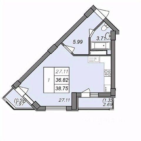Продаётся 1-комнатная квартира в строящемся доме (Позиция 38), срок сдачи: III-кв. 2026, общей площадью 38.2 кв.м., на 5 этаже. Расположение, транспортная доступность