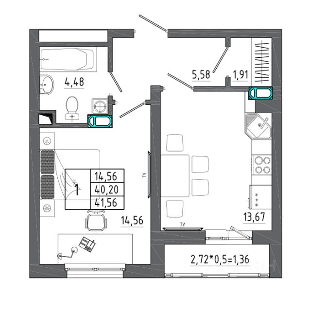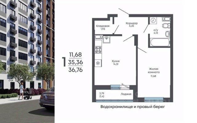 Продаётся 1-комнатная квартира в строящемся доме (Позиция 41), срок сдачи: I-кв. 2027, общей площадью 38.1 кв.м., на 5 этаже. Расположение, транспортная доступность