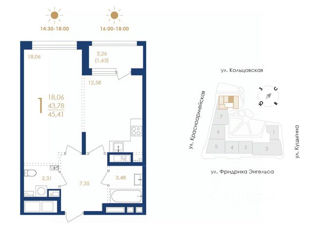 эргономичные студии с гардеробными зонами в прихожейклассические однокомнатные квартиры с большими кухнями и раздельными санузламидвухкомнатные квартиры классического и евро-формата с мастер-спальнями гардеробными комнатамипросторные трёхкомнатные квартиры гостиными, мастер-спальнями и двумя санузламиАрхитектура. Панорамное остекление и богатые природные цвета фасада в сочетании с акцентными медными арками, делают комплекс благородным, захватывающим и не похожим на другие. Архитектурные решения подчеркивают - это место для особенных.
