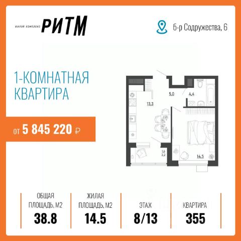 Продаётся 1-комнатная квартира в строящемся доме (Позиция 5 - 3 жилой квартал), срок сдачи: IV-кв. 2026, общей площадью 36.45 кв.м., на 7 этаже. Расположение, транспортная доступность Новый жилой микрорайон "Черемушки" занимает территорию 107 га на окраине поселка Отрадное, рядом с федеральной трассой М-4 "Дон" Москва - Новороссийск и региональной магистралью Р-193 Воронеж - Тамбов. Рядом с комплексом расположена остановка автобуса 124, который отправляется до Левобережной автостанции и Воронежа. Вблизи микрорайона, у Тамбовского переулка и трассы Р-193, останавливаются автобусы 53СБ, 98, 306В и 310. Поселок Отрадное - один из ближайших и экологически благоприятных пригородов Воронежа, который находится на правом берегу реки Усманка, у самой городской черты. Расстояние до центра Воронежа - 13 км, до аэропорта - 25 км. Инфраструктура ЖК "Черемушки" - это проект комплексного освоения территории с созданием полноценной инфраструктуры. Внутри комплекса построен детский сад "Ритм" на 280 мест. Во второй очереди строительства планируется открытие общеобразовательной школы на 1224 ученика со столовой, актовым залом, мастерскими, спортзалами и игровыми площадками. Всего в микрорайоне будет восемь детских садов (более тысячи мест) и четыре общеобразовательные школы (почти четыре тысячи мест), а также поликлиника на 400 посещений, спортивный комплекс, торговые центры и множество магазинов. В поселке есть Дом культуры с кружками и спортивными секциями, парк отдыха "Солнечный" с озером, беседками и аллеями со скамейками. Также поблизости расположены сетевые супермаркеты, амбулатория, аптека, гипермаркет "Леруа Мерлен" и фитнес-клуб. За несколько минут можно доехать на автомобиле до гипермаркетов "Твой Дом" и METRO Cash & Carry. Надежность застройщика Масштабный проект ЖК "Микрорайон Черемушки" реализует одно из старейших предприятий строительной отрасли Воронежской области - Воронежский домостроительный комбинат. ДСК был создан в 1968 году и за 50 лет ввел в эксплуатацию более 9 млн кв. м жилья. Главные производственные предприятия, принадлежащее холдингу, - завод крупнопанельного домостроения (КПД-2) и "СовТехДом". На заводе КПД-2 с 1973 года выпускаются ЖБИ для панельных домов 90-й серии (высотой от 5 до 9 этажей), в 1996 году налажен выпуск трехслойных панелей, а в 2007 году - стеновых панелей с эркерами. Завод "СовТехДом", оборудованный немецкими станками Weckenmann, с 2013 года производит железобетонные изделия нового поколения для строительства современных жилых зданий. Функции застройщика выполняет дочернее подразделение холдинга - ООО "Воронежбытстрой". Строительство микрорайона "Черемушки" было начато в 2015 году. Проект участвует в государственной программе "Жилье для российской семьи". Архитектура На территории 107 га планируется строительство более восьмидесяти панельных корпусов высотой от 17 до 25 этажей. Общая площадь жилья превысит один миллион кв. м, численность населения - 35 тыс. человек. Для автовладельцев запланированы 6000 маш