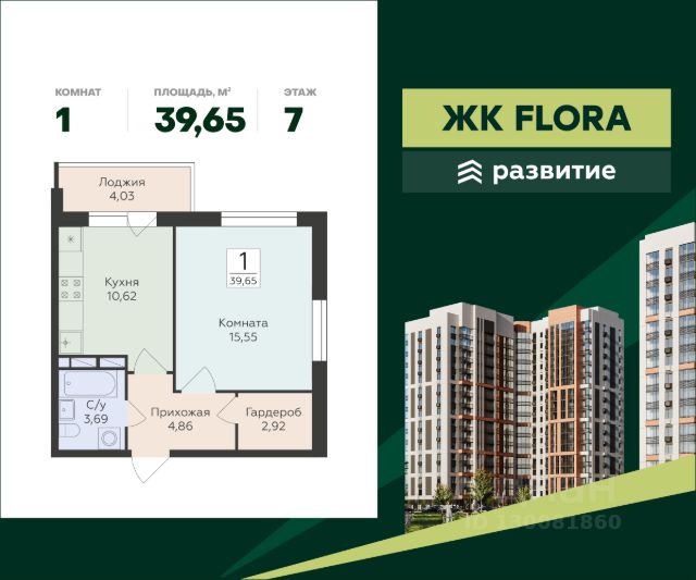В продаже квартира площадью 39.65 кв. м с черновой отделкой. Квартира расположена на 7 этаже 16 этажного дома, в жилом комплексе комфорт-класса FLORA ("Флора"). ЖК FLORA - лучшие условия для жизни в одном из самых привлекательных и зелёных районов города. Проект от ГК "Развитие" состоит из семи секций переменной этажности и также включает в себя мультифункциональные площадки для всех видов отдыха, собственное ритейл-пространство, 270 парковочных мест для автомобилей, множество продуманных планировок. Жизнь в идеальном балансе между природой и современным городом - жизнь в ЖК FLORA! Расположение Пешком: - 8 мин. до остановки "Институт генетики"; - 10 мин. до Дендрария; - 12 мин. до школы "Содружество" на 2860 учеников. На автомобиле: - 5 мин. до Московского проспекта; - 8 мин. до ВГАУ им. Петра I; - 15 мин. до пляжа у реки Воронеж; - 20 мин. до центра города. Благоустройство - двор, разделенный на функциональные пространства; - игровые комплексы для детей; - безопасное покрытие, защищающее от травм; - зона-воркаут; - тренажеры для силовых и кардио-тренировок; - велодорожки; - протяженная прогулочная аллея; - скамьи и беседки для отдыха; - ландшафтное озеленение; - освещение двора в вечерние часы; - просторный холл с уютным интерьером; - колясочные и кладовые; - лапомойки для собак; - система охраны и видеонаблюдения; - супермаркеты, пункты выдачи, кафе и пекарни прямо в доме. Окружение - центральные ВУЗы, большая школа, десятки детских садов и учреждений доп. образования; - памятник природы "Старовозрастные Дубравы", лесопарк НИИЛГиС, Ботанический сад ВГУ, Северный лес, парк имени К. Д. Глинки; - ТЦ "Московский проспект", стадион "Динамо", гипермаркеты "Лента", "Магнит"; - пляж у Воронежского водохранилища, Археологический музей, кинотеатр Star&Mlad, культурно-досуговый центр "Северный".