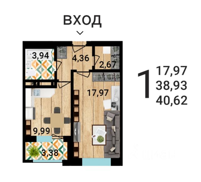 В жилом комплексе, расположенном в 4 километрах от исторического центра Воронежа, продается 1-комнатная квартира площадью 41.89 кв. м с черновой отделкой. Квартира расположена на 8 этаже корпуса 10908586 (ЖК "Суворов Сити 2" (1-й этап, ПОЗИ жилого комплекса комфорт-класса "Суворов Сити II" от федерального застройщика ГК "Развитие". Жилой комплекс "Суворов Сити II" - продолжение современного масштабного проекта "Суворов Сити", находящегося в спальном районе в четырех километрах от центра города. Проект сочетает удачное расположение с удобными планировками, актуальным дизайном и приватным двором. Расположение Пешком: - 5-10 минут - Автобусные остановки; - 12 минут - Школа 50; - 15 минут - Детский сад 174; - 20 минут - ТРЦ "Армада". На автомобиле: - 1 минута - улица Матросова; - 5 минут - улица Ворошилова, проспект Патриотов; - 10 минут - Вогрэсовский мост; - 15 минут - проспект Революции, Чернавский мост, вокзал "Воронеж-1"; - 30 минут - выезд на М-4; - 50 минут - аэропорт "Воронеж". Лобби - Колясочная; - Лапомойка для питомцев; - Входные группы с окнами в пол; - Лифты с возможностью спуска в подземный паркинг на 465 машиномест. Благоустройство - Двор закрыт от прохожих и транспорта; - Доступ на внутреннюю территорию, в парадные и в паркинг по ключам; - Круглосуточное видеонаблюдение; - Собственная инфраструктура (важные магазины и сервисы) на первом этаже здания; - Детский сад во дворе ЖК; - Пешеходная аллея; - Места для отдыха со скамейками и перголами; - Детские игровые и спортивные площадки; - Навигационная подсветка в темное время суток. Окружение - Спокойный спальный район; - Близко магазины, кафе, медклиник, салонов красоты, аптек; - В шаговой доступности - скверы, сады, ТРЦ, стадион. О застройщике Федеральный застройщик ГК "Развитие" лидирует по количеству возводимых объектов и входит в ТОП-20 девелоперов России. За 10 лет на рынке компания ввела в эксплуатацию свыше 700 тыс. кв. м жилья, еще столько же находится в стадии строительства. В портфеле - 30 завершенных проектов и более десятка тысяч заселенных квартир. Девелопер сотрудничает с ведущими отраслевыми партнерами, включая "Северсталь" и "Технониколь". "Развитие" специализируется на строительстве жилых комплексов и микрорайонов, развитии инфраструктуры и создании комфортной городской среды. Девелопер реализует проекты в Воронеже, Москве и области, Ленинградской области, Крыму, Орле и Самаре. Основные форматы - ЖК комфорт- и бизнес-класса, апарт-отели, прибрежные премиальные комплексы и жилые кластеры с коммерцией, парковками и благоустроенными дворами.