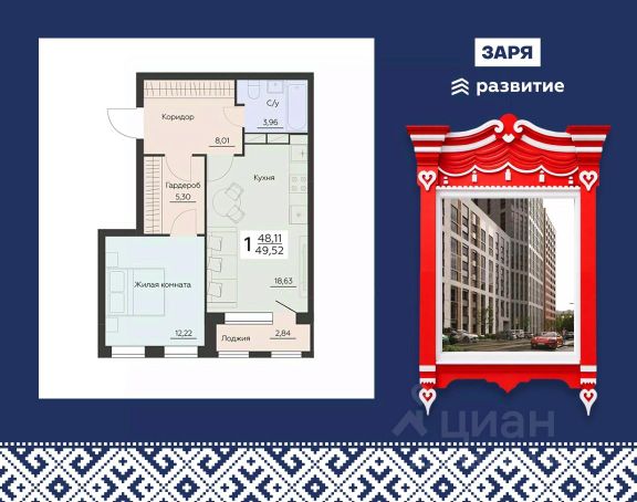 Продаётся 1-комнатная квартира в строящемся доме (Позиция 38), срок сдачи: III-кв. 2026, общей площадью 38.2 кв.м., на 8 этаже. Расположение, транспортная доступность
