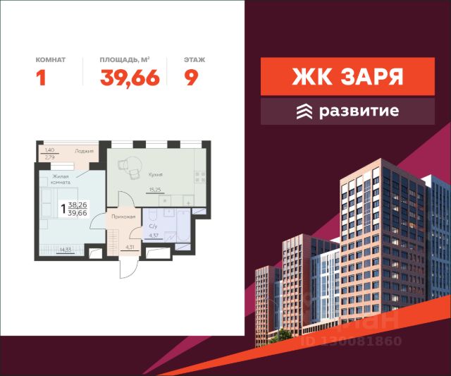 Продаётся 1-комнатная квартира в строящемся доме (улица Димитрова, 131 (Секция 2)), срок сдачи: I-кв. 2028, общей площадью 42.69 кв.м., на 9 этаже. Расположение, транспортная доступность