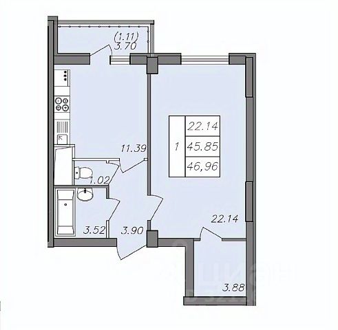 Квартира общей площадью 65,6кв.м на комфортном 6 этаже.