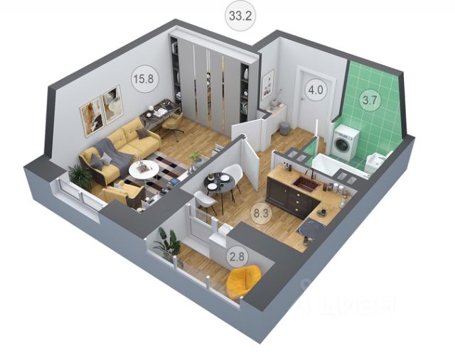 Продаётся 1-комнатная квартира в сданном доме (Маяковского, 45 (Позиция 4 (3 очередь))), срок сдачи: IV-кв. 2023, общей площадью 33.3 кв.м., на 1 этаже. Новый жилой комплекс "Славяноград" от Специализированного застройщика "ЖБИ-ЖИЛСТРОЙ 36" расположен в г. Семилуки Воронежской области на ул. Маяковского.