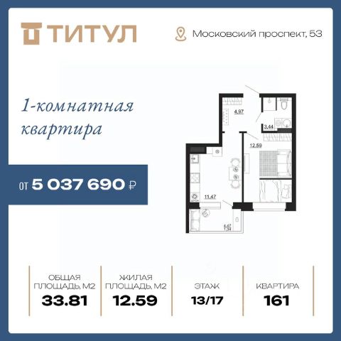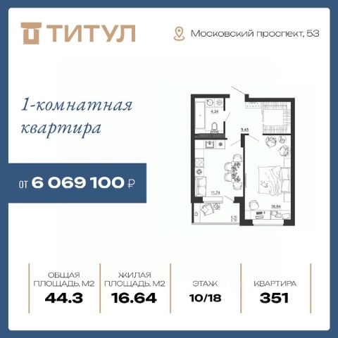Продаётся 1-комнатная квартира в строящемся доме (Секция 2), срок сдачи: IV-кв. 2026, общей площадью 35.39 кв.м., на 3 этаже. Новый жилой комплекс "Титул" от Специализированного застройщика ООО "Рента" расположен по адресу: г. Воронеж, по ул. Московский проспект.