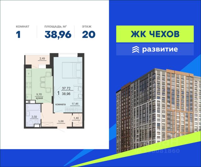 Продается квартира площадью 41.36 кв. м без отделки. Квартира находится на 20 этаже 20 этажного дома, в жилом комплексе "Чехов". Комплекс расположен по адресу - г. Воронеж, ул. Богдана Хмельницкого д. 45а. ЖК "Чехов" - новый проект ГК "Развитие" в Железнодорожном районе. Это современный жилой дом, состоящий из 4 секций с закрытым от шума собственным двором-"полумесяцем", где будет безопасно отпустить ребенка на прогулку и оставить автомобиль на ночь. Это проект для тех, кто ценит удобство и функциональность жилья, кто хочет получить максимальный комфорт за разумную цену. Расположение Пешком: - 4 мин. до автобусной остановки "Мебель Черноземья"; - 15 мин. до Суворовского затона; - 20 мин. до пляжа у Воронежского водохранилища. На автомобиле: - 2 мин. до Ленинского проспекта; - 5 мин. до ж/д станции "Отрожка"; - 15 мин. до центра города; - 20 мин. до вокзала "Воронеж-Южный". Благоустройство - большой озелененный двор; - умное зонирование; - взрослые деревья и живые цветы; - площадки для детей всех возрастов; - развивающий комплекс для самых маленьких; - зоны для фотосессий, особенно интересные подросткам; - спортивные конструкции и тренажеры; - безопасное покрытие на активных площадках; - собственный вишневый сад; - прогулочные и велосипедные дорожки; - отдельная стоянка для машин; - ритейл на первых этажах: рестораны, продуктовые лавки, службы быта. Окружение - 10 образовательных учреждений: школы, детские сады, колледжи, ВУЗы; - торгово-развлекательные центры "Максимир", "Лазурный", "Depo"; - 3 фитнес-центра, гребная база и стадион "Локомотив"; - пляж у Голубого озера, Репнинский лес, Центральный парк, Помологический сад ВГАУ и множество других парковых зон в центре города.
