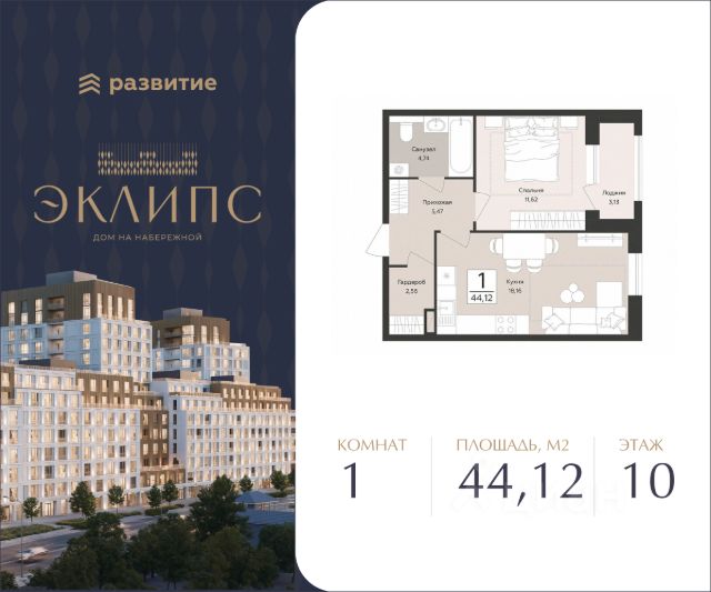 В жилом доме, расположенном в историческом центре на первой линии реки Воронеж, продается 1-комнатная квартира площадью 42.85 кв. м с черновой отделкой. Квартира расположена на 2 этаже жилого дома бизнес-класса "Эклипс" от федерального застройщика ГК "Развитие".