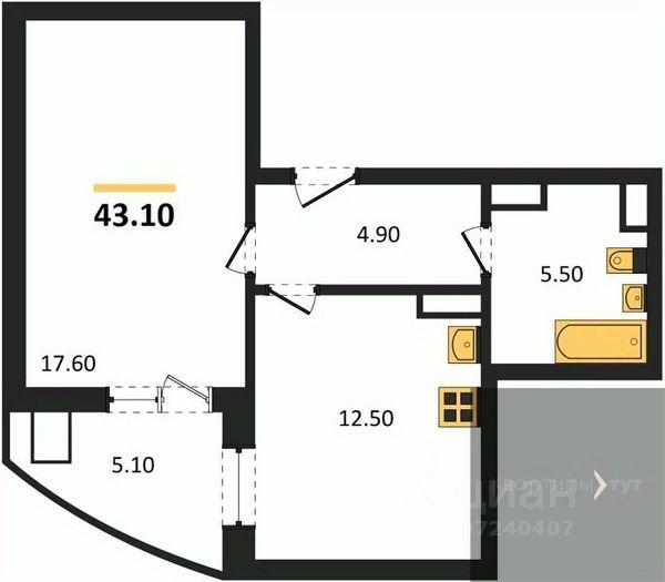 Квартира: 1 к 43,10 кв.м., 17 этаж в комплексе Ласточкино, 10 очередь, корп.22, сдача: 2кв. , этажей: 17, адрес Воронеж г., Шибилкина ул., , Застройщик: ДСК.