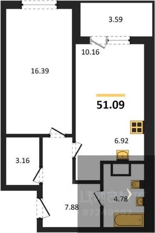 Квартира: 1 к 49,43 кв.м., 19 этаж в комплексе Бунин, 3 очередь, корп.1 (Секции 6,7), сдача: 2кв. , этажей: 23, адрес Воронеж г., Московский пр., д. 136, Застройщик: ВДК.