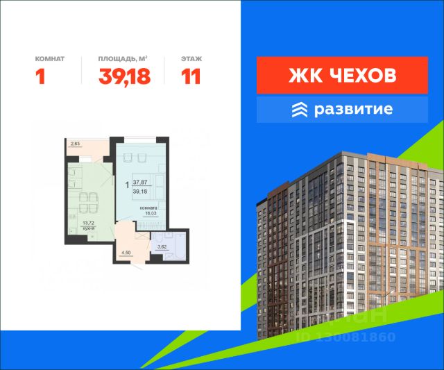 Продается квартира площадью 36.38 кв. м без отделки. Квартира находится на 19 этаже 20 этажного дома, в жилом комплексе "Чехов". Комплекс расположен по адресу - г. Воронеж, ул. Богдана Хмельницкого д. 45а. ЖК "Чехов" - новый проект ГК "Развитие" в Железнодорожном районе. Это современный жилой дом, состоящий из 4 секций с закрытым от шума собственным двором-"полумесяцем", где будет безопасно отпустить ребенка на прогулку и оставить автомобиль на ночь. Это проект для тех, кто ценит удобство и функциональность жилья, кто хочет получить максимальный комфорт за разумную цену. Расположение Пешком: - 4 мин. до автобусной остановки "Мебель Черноземья"; - 15 мин. до Суворовского затона; - 20 мин. до пляжа у Воронежского водохранилища. На автомобиле: - 2 мин. до Ленинского проспекта; - 5 мин. до ж/д станции "Отрожка"; - 15 мин. до центра города; - 20 мин. до вокзала "Воронеж-Южный". Благоустройство - большой озелененный двор; - умное зонирование; - взрослые деревья и живые цветы; - площадки для детей всех возрастов; - развивающий комплекс для самых маленьких; - зоны для фотосессий, особенно интересные подросткам; - спортивные конструкции и тренажеры; - безопасное покрытие на активных площадках; - собственный вишневый сад; - прогулочные и велосипедные дорожки; - отдельная стоянка для машин; - ритейл на первых этажах: рестораны, продуктовые лавки, службы быта. Окружение - 10 образовательных учреждений: школы, детские сады, колледжи, ВУЗы; - торгово-развлекательные центры "Максимир", "Лазурный", "Depo"; - 3 фитнес-центра, гребная база и стадион "Локомотив"; - пляж у Голубого озера, Репнинский лес, Центральный парк, Помологический сад ВГАУ и множество других парковых зон в центре города. 1-комнатная квартира в ипотеку в новостройке в районе Железнодорожный в городе Воронеж.
