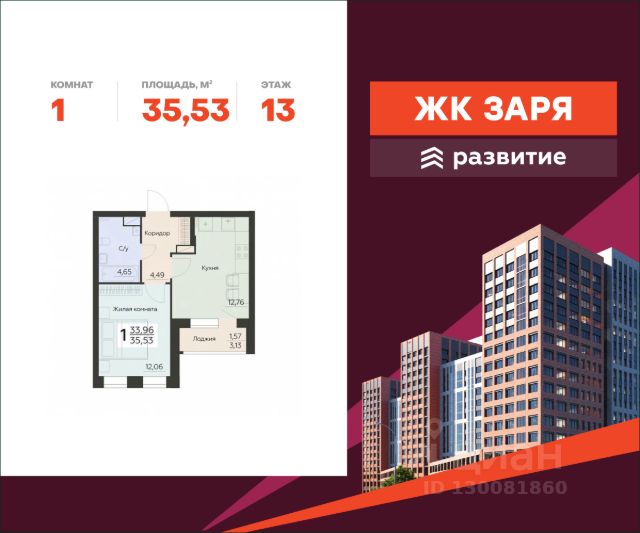 Продаётся 1-комнатная квартира в строящемся доме (Позиция 49), срок сдачи: IV-кв. 2025, общей площадью 38.2 кв.м., на 7 этаже. Расположение, транспортная доступность