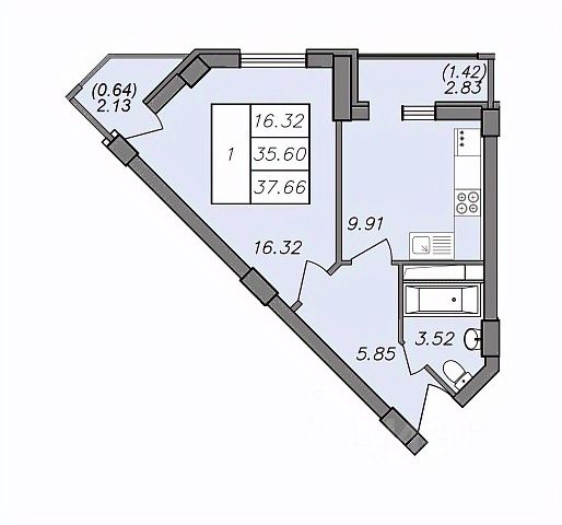 Продаётся 1-комнатная квартира в сданном доме (Шидловского, 26 (Дом 13 - Позиция 50)), срок сдачи: II-кв. 2023, общей площадью 38.6 кв.м., на 2 этаже. Расположение, транспортная доступность