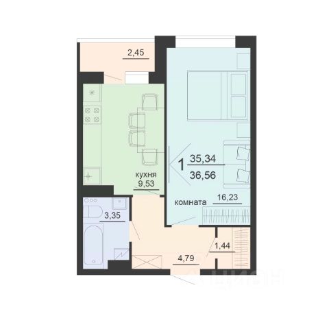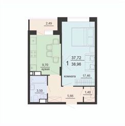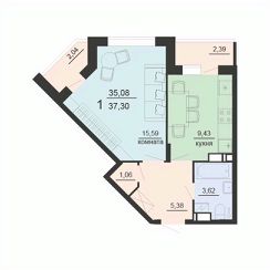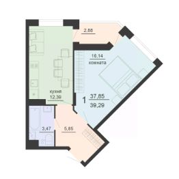 Квартира: 1 к 40,09 кв.м., 13 этаж в комплексе Z-town, 1 очередь, корп.1, сдача: 2кв. , этажей: 21, адрес Воронеж г., Чуева наб., д. 7, Застройщик: Новый код.