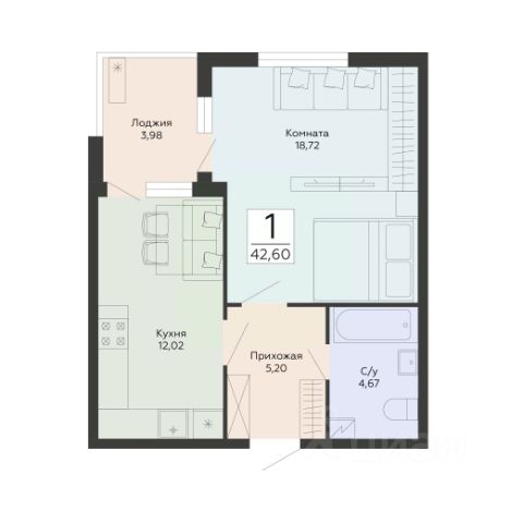 Продаётся 1-комнатная квартира в строящемся доме (1 этап), срок сдачи: IV-кв. 2029, общей площадью 42.6 кв.м., на 6 этаже. Новый жилой комплекс от группы компаний "Развитие" расположен по адресу: г. Воронеж, по ул. Туполева.