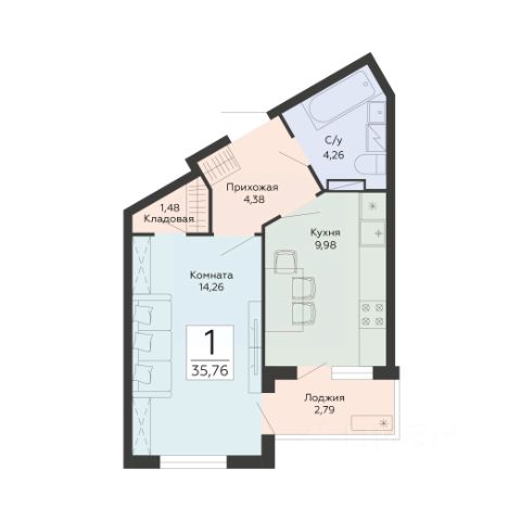 Продаётся 1-комнатная квартира в строящемся доме (1 этап), срок сдачи: IV-кв. 2029, общей площадью 35.76 кв.м., на 8 этаже. Новый жилой комплекс от группы компаний "Развитие" расположен по адресу: г. Воронеж, по ул. Туполева.