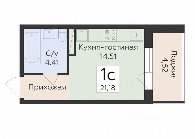 Общая площадь 40,69 кв.м, Комната: 14,79 кв.м