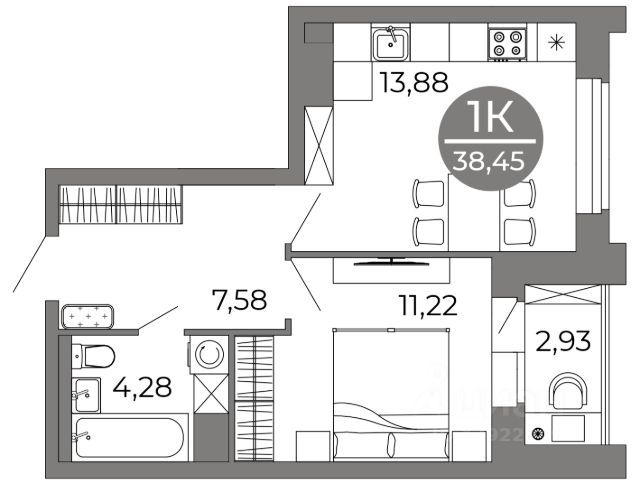 Квартира: 1 к 43,60 кв.м., 11 этаж в комплексе Высота, 5 очередь, корп.5, сдача: 4кв. , этажей: 25, адрес Воронеж г., Краснознаменная ул., д. 57/5, Застройщик: Аксиома.