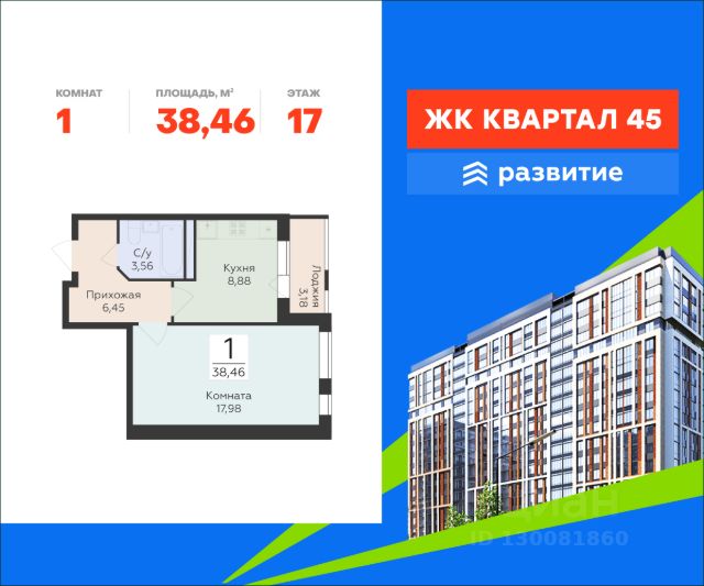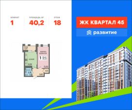 В продаже квартира площадью 40.20 кв. м с черновой отделкой отделкой. Квартира расположена на 18 этаже 18 этажного дома, в жилом комплексе комфорт-класса "Квартал 45". "Квартал 45" - это амбициозный проект будущего сердца Московского проспекта, в котором объединены лучшие градостроительные традиции, уникальная архитектура и современные технологии дизайна. Удачная локация рядом с центром, функциональные планировки, приватный парк в шаге от дома, собственный подземный паркинг на 187 машино-мест. Проект от девелопера "Развитие" сочетает в себе все преимущества современного комфортного жилья. Расположение Пешком: - 3 мин. до остановки "Московский проспект"; - 5 мин. до Центрального автовокзала; - 15 мин. до уютного Коминтерновского сквера. На автомобиле: - 10 мин. до центра Воронежа; - 10 мин. до Ботанического сада; - 15 мин. до Петровской набережной. Благоустройство - приватный двор для жителей; - безопасность: нет машин, работают видеокамеры; - много зелени: деревья, кустарники, газоны; - тихие места для отдыха на свежем воздухе; - спортивный корт для командных игр; - силовые тренажеры и турники; - игровой городок для детей всех возрастов; - лужайки для пикников; - велосипедные и беговые дорожки; - длинный прогулочный бульвар; - просторный холл с авторским дизайном; - 2 лифта в каждом подъезде - грузовой и пассажирский; - удобные зоны хранения колясок и спортивного инвентаря; - кафе, продуктовые магазины, салоны красоты и другая инфраструктура на первом этаже дома. Окружение - 5 парков в пределах 10 минут: Центральный парк, Ботанический сад ВГУ, Лесопарковый участок НИИЛГиС, парк Победы, Северный лес; - спорткомплекс и стадион "Динамо", "Арена Север", Центральный стадион профсоюзов; - детская и взрослая областная больница, несколько частных клиник; - ТРЦ "Московский проспект", ТЦ "Москва", множество сетевых супермаркетов. Купить 1-комнатную квартиру первичка в районе Коминтерновский в городе Воронеж.