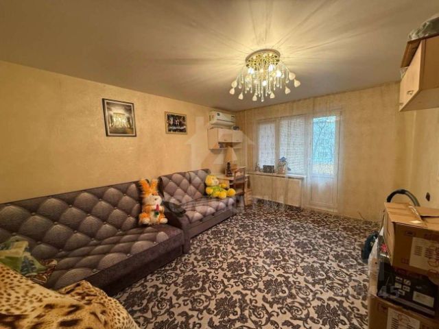 Жилая комната с большим видовым окном, широкий удобный подоконник столешница. Встроенный шкаф купе, с множеством полок.