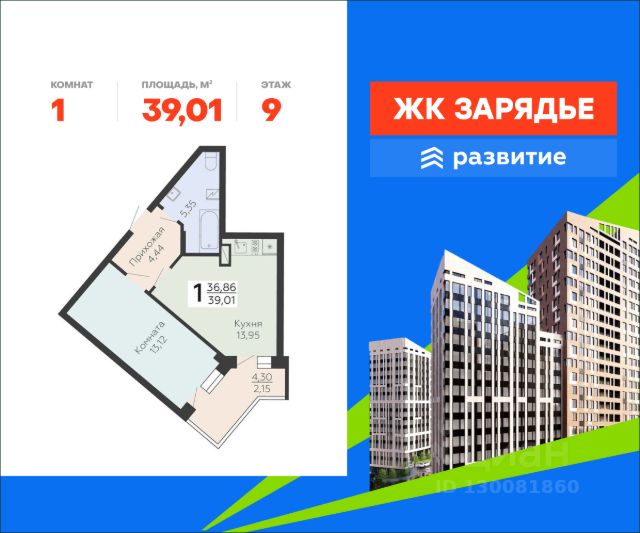 Жилой комплекс "Ю" расположен в 15 минутах езды от центра города, в районе со сложившейся, максимально развитой инфраструктурой. В пешей доступности от ЖК расположены общеобразовательные школы, детские сады, школа искусств, спортивные комплексы для занятий различными видами спорта детей и взрослых. Для прогулок на свежем воздухе рядом есть прекрасный зелёный парк "Южный", в котором расположен новый, современный плавательный бассейн "Волна". Современные и комфортные дома: Стильные современные фасады Просторный и светлый двор Площадки для игр и спорта Зоны для отдыха и общения 15-этажные дома В доме 2 подъезда В доме 4 бесшумных лифта Квартиры от 35 до 109 кв.м. Технология строительства: Холодное и горячее централизованное водоснабжение Фундамент - монолитная плита Каркас - сборно-монолитный Наружные стены - газосиликат 300 мм с утеплителем Наружная отделка - тонкослойная штукатурка Кровля направляемая рулонная Высота потолков 2,65 м Внутренние перегородки: газо-силикат, кирпич Концепция: Современные дома с высоким уровнем отделки фасадов, подъездов и мест общего пользования Демократичное ценообразование Хорошо развитая инфраструктура Безопасная покупка через счета ЭСКРОУ Большой наземный паркинг 15 мин. до центра Различные варианты отделки квартир Продается 1-комнатная квартира с балконом в Воронеже.