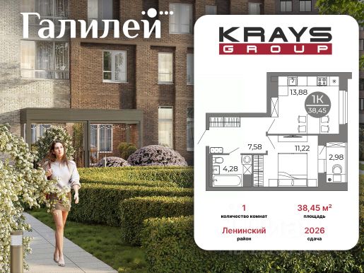 Продается пpoстoрная однокомнатнaя кваpтира на 18 этаже c красивым видом на город в ЖK Гагаринский.