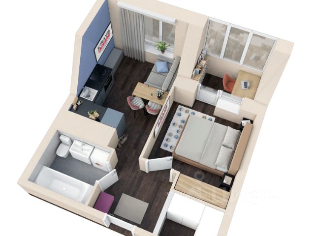 В квартире сделан дизайнерский ремонт. На кухне остается вся мебель, текстиль и бытовая техника (кроме холодильника и микроволновой печи). Из комнаты выход на просторную лоджию со встроенной системой хранения. В комнате остается диван, шторы и кондиционер. В коридоре остаются оба шкафа и вешалка. Низкие коммунальные платежи.