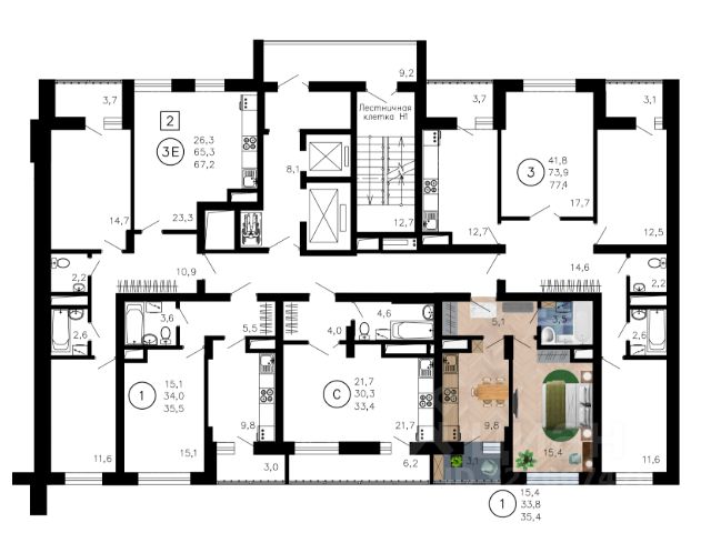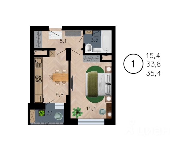 Квартира: 1 к 37,81 кв.м., 2 этаж в комплексе Z-town, 1 очередь, корп.1, сдача: 2кв. , этажей: 21, адрес Воронеж г., Чуева наб., д. 7, Застройщик: Новый код.