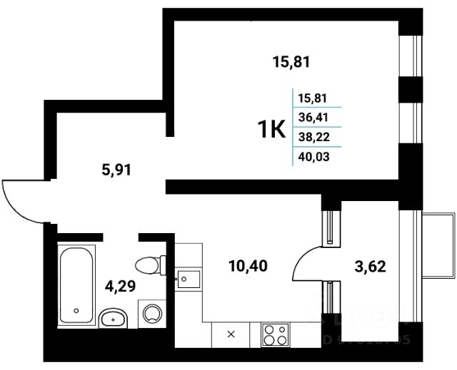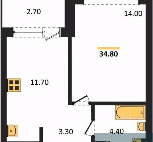 Квартира: 1 к 34,80 кв.м., 8 этаж в комплексе Ритм, 1 очередь, корп.1 (секции 3-4), сдача: 2кв. , этажей: 13, адрес Воронеж г., Содружества бул., д. 6, Застройщик: Инвестжилстрой.