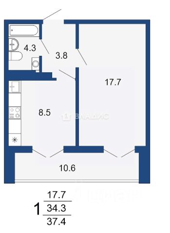 Номер в базе: 10671661 Купить 1-комнатную квартиру с лоджией в Воронеже.