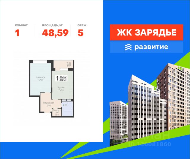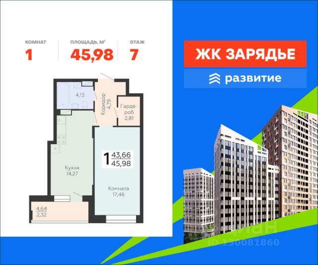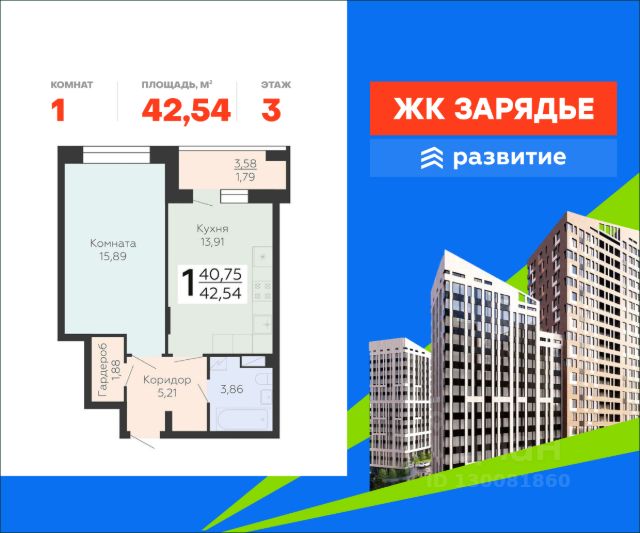 В продаже квартира площадью 38.57 кв. м с черновой отделкой. Квартира расположена на 11 этаже 13 этажного дома, в новом микрорайоне комфорт-класса "Зарядье" (Девелопер - ГК "Развитие"). Арт-квартал "Зарядье" - новый центр притяжения Коминтерновского района. Проект состоит из трех зданий переменной этажности, соединенных единым двором-парком, также он оснащен просторным подземным паркингом. Это уникальный квартал, в котором превосходная транспортная доступность, современная инфраструктура, сочетаются безупречные цветовые решения и эксклюзивные форматы квартир. Расположение Пешком: - 5 мин. до остановки "Политехнический институт"; - 7 мин. до Коминтерновского сквера; - 20 мин. до Центрального автовокзала. На автомобиле: - 5 мин. до Московского проспекта; - 10 мин. до центра города; - 15 мин. до Центрального парка; - 20 мин. до набережной у Воронежского водохранилища. Благоустройство - большой двор-парк; - функциональное зонирование территории; - сложный ландшафт, наполненный красками; - площадки для самых маленьких; - игровые комплексы для подростков; - футбольный корт; - протяженный прогулочный бульвар; - зоны отдыха среди деревьев; - беседки и скамейки по всему периметру; - workout-площадка; - дизайнерские лобби; - собственная служба консьержа; - 324 парковочных мест в подземном паркинге и на гостевой стоянке; - магазины, аптеки и кафе на первых этажах. Окружение - 4 уютных сквера: Коминтерновский, Солнечный, Политехнический, Электросигнальный; - спортивный центр BTR, Центральный стадион профсоюзов, фитнес-клуб "Олимп"; - ТРК "Арена", ТРЦ "Московский проспект", больницы, рестораны и учебные заведения Центрального района; - театр драмы имени Кольцова, Воронежский цирк, большой концертный зал, театр оперы и балета - все в пределах 15 минут. Продам 1-комнатную квартиру на улице Электросигнальная в городе Воронеж.