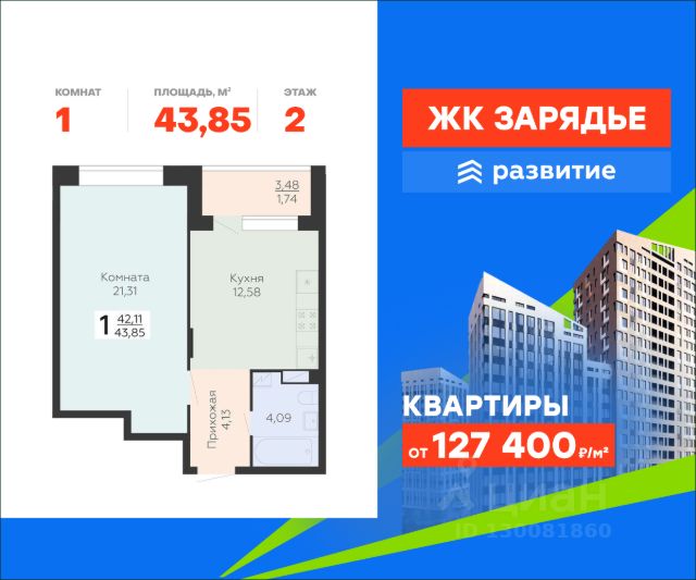 В продаже квартира площадью 41.04 кв. м с черновой отделкой. Квартира расположена на 2 этаже 15 этажного дома, в новом микрорайоне комфорт-класса "Зарядье" (Девелопер - федеральный застройщик ГК "Развитие"). Арт-квартал "Зарядье" - новый центр притяжения Коминтерновского района. Проект состоит из трех зданий переменной этажности, соединенных единым двором-парком, также он оснащен просторным подземным паркингом. Это уникальный квартал, в котором превосходная транспортная доступность, современная инфраструктура, сочетаются безупречные цветовые решения и эксклюзивные форматы квартир. Расположение Пешком: - 5 мин. до остановки "Политехнический институт"; - 7 мин. до Коминтерновского сквера; - 20 мин. до Центрального автовокзала. На автомобиле: - 5 мин. до Московского проспекта; - 10 мин. до центра города; - 15 мин. до Центрального парка; - 20 мин. до набережной у Воронежского водохранилища. Благоустройство - большой двор-парк; - функциональное зонирование территории; - сложный ландшафт, наполненный красками; - площадки для самых маленьких; - игровые комплексы для подростков; - футбольный корт; - протяженный прогулочный бульвар; - зоны отдыха среди деревьев; - беседки и скамейки по всему периметру; - workout-площадка; - дизайнерские лобби; - собственная служба консьержа; - 324 парковочных мест в подземном паркинге и на гостевой стоянке; - магазины, аптеки и кафе на первых этажах. Окружение - 4 уютных сквера: Коминтерновский, Солнечный, Политехнический, Электросигнальный; - спортивный центр BTR, Центральный стадион профсоюзов, фитнес-клуб "Олимп"; - ТРК "Арена", ТРЦ "Московский проспект", больницы, рестораны и учебные заведения Центрального района; - театр драмы имени Кольцова, Воронежский цирк, большой концертный зал, театр оперы и балета - все в пределах 15 минут. Продам 1-комнатную квартиру на улице Электросигнальная в городе Воронеж.