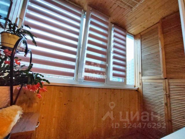 Балкон застеклён ПВХ, утеплён, отделан вагонкой; есть удобный шкафчик для хранения сезонных вещей.