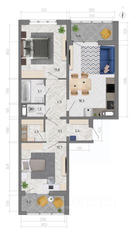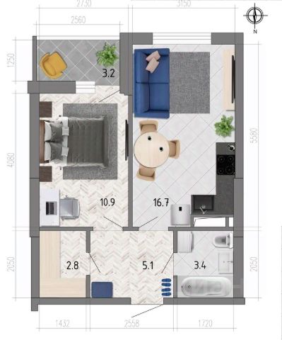 • Состояние: Квартира в хорошем состоянии, требует минимальных вложений для начала эксплуатации.