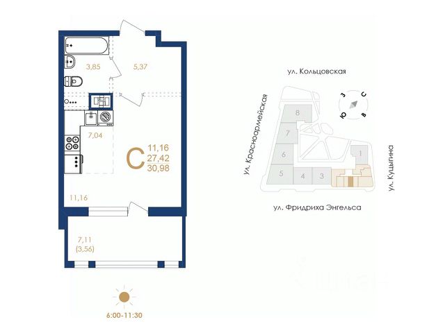 "Дом на Фридриха Энгельса" престижная локация с исключительной инфраструктурой. Особая атмосфера исторического центра. В жилом доме предусмотрено 8 секций, 309 эксклюзивных квартир по технологии монолитного домостроения - Переменная этажность: 6 17 - Площадь квартир: от 29,89 до 127,29 кв. м - Площадь террас: от 2,24 до 99,34 кв. м - Высота потолков в квартирах: 3,1 м - Свободные планировки, евроформат - Эксклюзивные решения (мастер-спальня с собственным выходом на террасу, ванная комната с видом на город) - Авторская архитектура - Концептуальное благоустройство, архитектурная подсветка - Премиальное лобби - Дизайнерские бесшумные лифты Meteor - Закрытая охраняемая территория - Высокий уровень безопасности, сервиса и приватности - Подземный 2-х уровневый паркинг (270 машино-мест) - Электрические зарядки для автомобилей - Кладовые - Ритейл на 1 этажах Трейд-ин. Действующие ипотечные ставки и акции уточняйте в офисе продаж застройщика. Услуга собственного менеджера по ипотечному кредитованию - удобная опция для клиентов компании. Специалисты обеспечат вам комфортные условия получения кредита и будут рядом на каждом этапе, возьмут на себя все взаимодействие с банком. Квартира от застройщика! Строительная компания "ВЫБОР" предлагает купить однокомнатную квартиру в "Дом на Фридриха Энгельса" в Воронеже. Успей приобрести квартиру по выгодной цене! Строительная компания "ВЫБОР" — один из ведущих застройщиков в Центрально-Черноземном регионе. Квартиры в новостройках от застройщика. Продам 1-комнатную квартиру на улице Фридриха Энгельса в городе Воронеж.