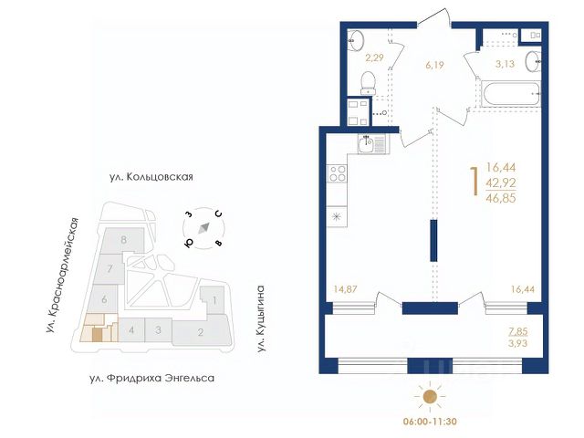 "Дом на Фридриха Энгельса" престижная локация с исключительной инфраструктурой. Особая атмосфера исторического центра. В жилом доме предусмотрено 8 секций, 309 эксклюзивных квартир по технологии монолитного домостроения - Переменная этажность: 6 17 - Площадь квартир: от 29,89 до 127,29 кв. м - Площадь террас: от 2,24 до 99,34 кв. м - Высота потолков в квартирах: 3,1 м - Свободные планировки, евроформат - Эксклюзивные решения (мастер-спальня с собственным выходом на террасу, ванная комната с видом на город) - Авторская архитектура - Концептуальное благоустройство, архитектурная подсветка - Премиальное лобби - Дизайнерские бесшумные лифты Meteor - Закрытая охраняемая территория - Высокий уровень безопасности, сервиса и приватности - Подземный 2-х уровневый паркинг (270 машино-мест) - Электрические зарядки для автомобилей - Кладовые - Ритейл на 1 этажах Трейд-ин. Действующие ипотечные ставки и акции уточняйте в офисе продаж застройщика. Услуга собственного менеджера по ипотечному кредитованию - удобная опция для клиентов компании. Специалисты обеспечат вам комфортные условия получения кредита и будут рядом на каждом этапе, возьмут на себя все взаимодействие с банком. Квартира от застройщика! Строительная компания "ВЫБОР" предлагает купить однокомнатную квартиру в "Дом на Фридриха Энгельса" в Воронеже. Успей приобрести квартиру по выгодной цене! Строительная компания "ВЫБОР" — один из ведущих застройщиков в Центрально-Черноземном регионе. Квартиры в новостройках от застройщика. Продам 1-комнатную квартиру на улице Фридриха Энгельса в городе Воронеж.