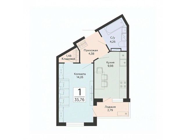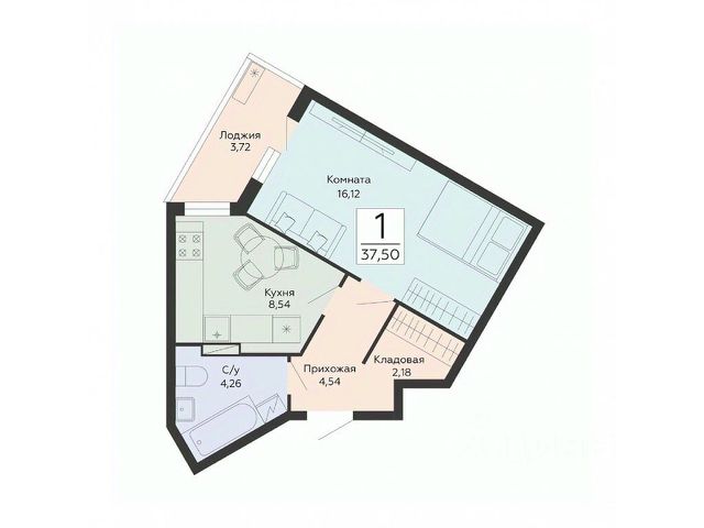 Номер объекта: #1/537904/20479 1-комнатная квартира на улице Туполева в городе Воронеж.