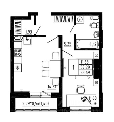 Предлагается к покупке однокомнатная квартира общей площадью 39 кв.м., расположенная на 2 этаже 17-этажного монолитно-кирпичного дома, построенного в 2024 году.