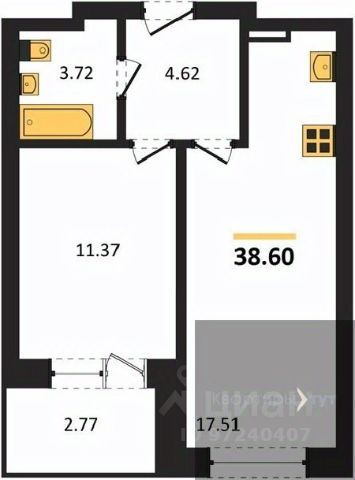 Квартира: 1 к 37,72 кв.м., 9 этаж в комплексе Дом у Ротонды, 1 очередь, корп.1, сдача: 4кв. , этажей: 28, адрес Воронеж г., Транспортная ул., д. 58, Застройщик: ГК ГРАД.