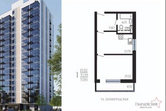 1-комнатные квартиры в жилом комплексе ГвардейскийЖК «Гвардейский»