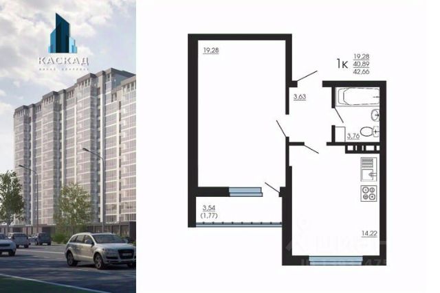 Продаётся 1-комнатная квартира в строящемся доме (улица Димитрова, 131 (Секция 2)), срок сдачи: I-кв. 2028, общей площадью 36.33 кв.м., на 2 этаже. Расположение, транспортная доступность Жилой комплекс "Каскад" строится в развитом районе Воронежа, недалеко от исторического центра. Расстояние до деловых кварталов города всего 5,5 км. На машине этот путь легко преодолеть за несколько минут. У жилого комплекса есть удобный выезд на улицу Димитрова, затем на перекрестке с круговым движением нужно выехать на улицу Брусилова, которая переходит в Чернавский мост, пролегающий через реку Воронеж, а далее по улице Степана Разина добраться до нужной точки в центральной части города. Пассажиры общественного транспорта доберутся до центра за двадцать минут (с учетом ожидания). В ста метрах от ЖК находится остановка "Волгоградская улица", от которой отправляются автобусы и маршрутное такси. Инфраструктура Левобережный район, где расположена новостройка, отличается благоприятной экологической обстановкой и развитой сетью инфраструктуры. На первых этажах здания разместятся магазины и другие коммерческие объекты. Все необходимое для комфортной жизни расположено в непосредственной близости от ЖК. В двух шагах от "Ксакада" - продуктовый рынок, сетевые супермаркеты "Пятью пять", "Пятерочка", почта, аптека "Будь здоров", парикмахерская, салон красоты "Аврора". Немногим дальше расположены пиццерия "Жар-Пицца", банкетный зал "Сказка", магазин хозяйственных товаров и бытовой химии. В шаговой доступности работают средняя общеобразовательная школа и несколько детских садиков. Вокруг много скверов и зеленых насаждений: Витебский сквер, бульвар Димитрова, сквер "Каскад", а неподалеку от него - Олимпийский парк. В нескольких минутах ходьбы находится Автомобильно-транспортный институт, на территории которого работает спортивный клуб, за десять минут можно доехать "Дворца подводного спорта" с бассейном. Надежность застройщика Возведением жилого комплекса занимается ООО "Дон-Инвест". Эта сравнительно молодая строительная организация уже успела заработать репутацию надежного, перспективного, динамично развивающегося застройщика. В проект "Каскад" ООО "Дон-Инвест" вкладывает все силы, тщательно следит за качеством и сроками выполнения строительных работ. В активе компании - успешный опыт строительства коттеджных поселков, а возведение многоэтажного жилого комплекса должно вывести организацию на принципиально новый уровень. Застройщик при поддержке властей принимает участие в городской программе расселения жильцов из ветхого и аварийного фонда, что также свидетельствует о надежности компании. Все сделки заключаются в строгом соответствии с законом. Архитектура ЖК "Каскад" - это монолитно-кирпичный дом переменной этажности (6-14 этажей), состоящий из восьми секций. Фасад будет утеплен, оштукатурен и окрашен в светлой цветовой гамме. Лифтовые зоны и помещения общего пользования будут просторными и удобными, отделанными качественными материалами. В жилом комплексе предусм Продам 1-комнатную квартиру в ЖК Каскад в Воронеже.