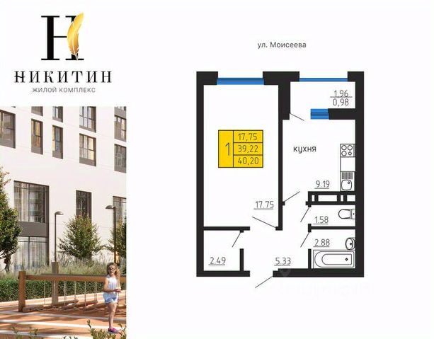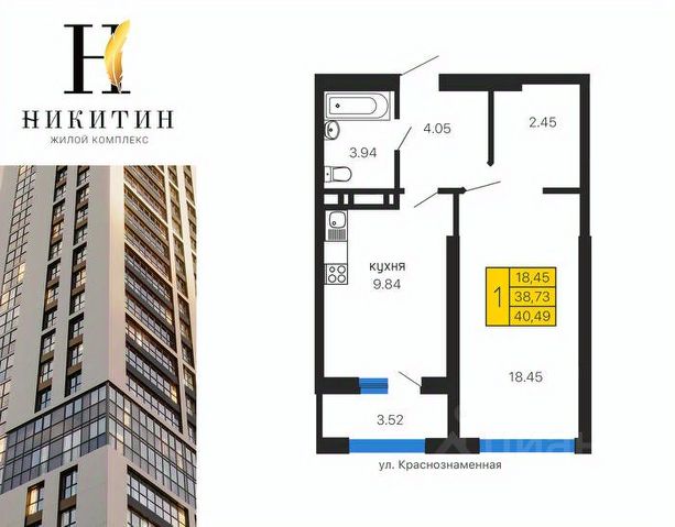 Продаётся 1-комнатная квартира в строящемся доме (Дом 2), срок сдачи: IV-кв. 2027, общей площадью 40.2 кв.м., на 4 этаже. Жилой комплекс "Никитин" расположен в Ленинском районе города Воронеж. Он представляет собой современный жилой комплекс, который включает в себя несколько многоэтажных домов, обустроенных территорию и парковочные места. ЖК "Никитин" предлагает различные типы квартир, от однокомнатных до многокомнатных, с различной планировкой и площадью. В квартирах учтены современные требования к комфорту и функциональности, а также использованы качественные материалы и технологии при их строительстве. Кроме того, в составе жилого комплекса "Никитин" также предусмотрены различные инфраструктурные объекты, такие как детские площадки, магазины, спортивные и развлекательные зоны. ЖК "Никитин" находится в удобном месте, которое обеспечивает доступность к основным транспортным магистралям и другим элементам городской инфраструктуры. ЖК "Никитин" обеспечивает своих жителей уютной и благоустроенной территорией. Здесь нет машин, что создает спокойную и безопасную атмосферу. Территория ограждена забором, что обеспечивает приватность и безопасность жителей. Территория комплекса разделена на 3 основные зоны: лаунж, детская и спортивная. Лаунж зона порадует жителей альпийскими горками, беседками и устройством для зарядки телефонов. В детской зоне созданы идеальные условия для активных игр и развлечений, а в спортивной зоне можно заниматься спортом на свежем воздухе. Также предусмотрена вспомогательная зона для выгула собак. Все эти элементы создают идеальное пространство для жизни и отдыха. Жилой комплекс "Никитин" предоставляет своим жильцам удобную и современную подземную парковку. В ней находится пост с мойками самообслуживания с пылесосом и возможностью подкачки шин. Для владельцев электрокаров предусмотрен пост зарядки, а также отдельное место для зарядки электроскутеров. Парковка обеспечена системой видеонаблюдения, которая обеспечивает безопасность автомобилей и жильцов. Въезд на паркинг осуществляется по системе считывания номеров, что упрощает процесс и делает его быстрым.